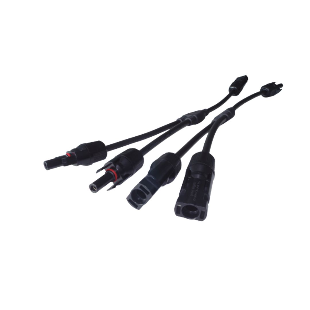 Optimiza tus instalaciones solares con este par de conectores en Y MC4, diseñados para unir dos paneles solares en paralelo hacia una misma entrada de controlador o inversor. Su diseño robusto y conexión tipo snap-in garantizan una instalación rápida, segura y sin herramientas especiales.