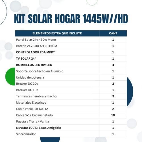 Descripción 1 NEVERA 100 LTS ECO BLUE de 28W 4 BOMBILLOS LED DC de 9W 1 TV 24″ LED SOLAR de 35W 2 cargadores para celular de 7W cada uno ¡Haz clic para puntuar esta entrada! (Votos: 0 Promedio: 0)