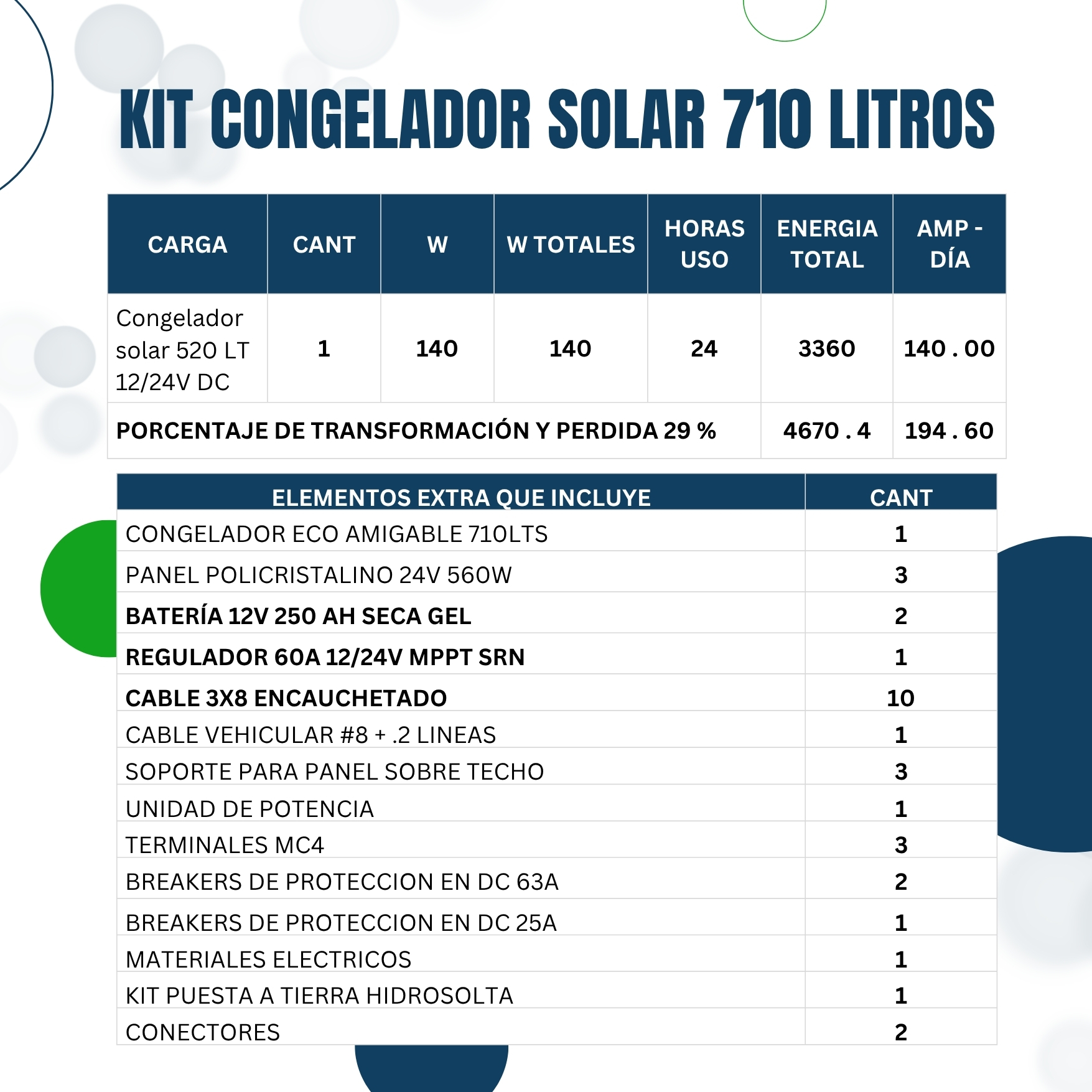 KIT PARA CONGELADOR SOLAR ECO AMIGABLE DE 710LTS 12/24VDC